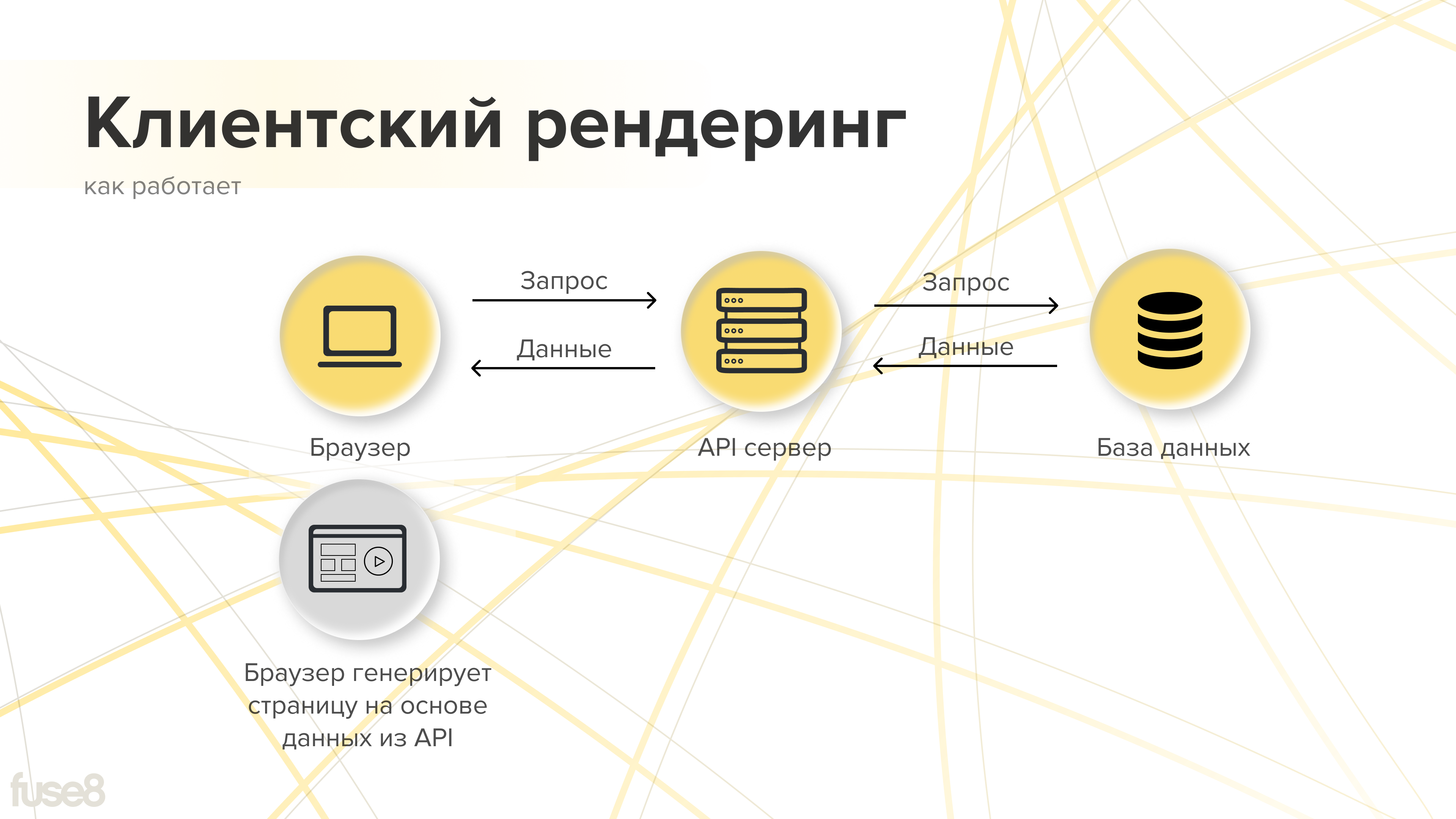С клиентским рендерингом одна проблема — он не годится для проектов, требующих SEO-оптимизации. Поисковики плохо индексируют страницы, которые рендерятся в браузере, поэтому для SEO стоит применять другую архитектуру фронтенда.