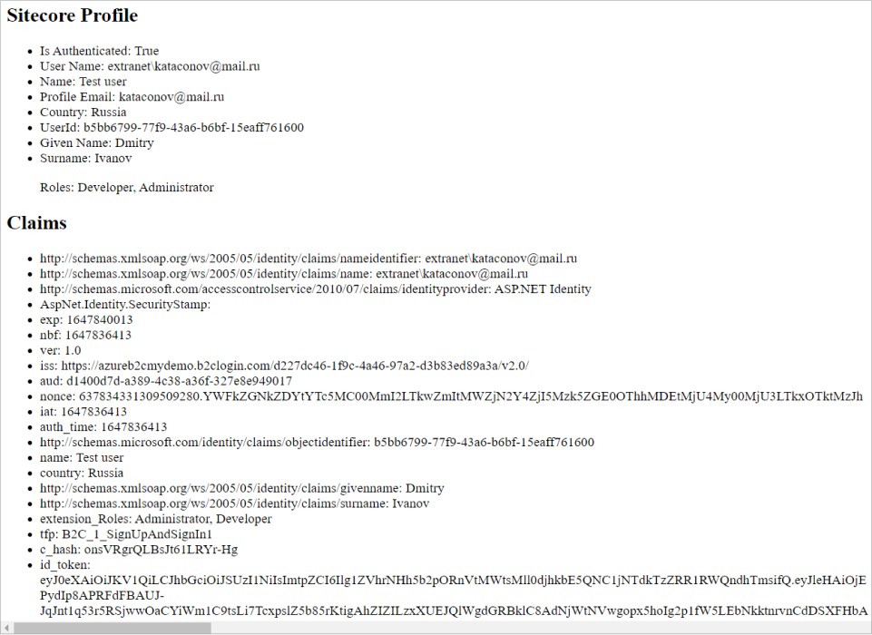 Рисунок 6 — Azure AD B2C тестовая страница (авторизованный)