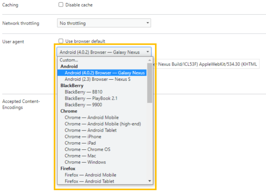 После этого из выпадающего списка ниже вы сможете выбрать нужный User-Agent.
