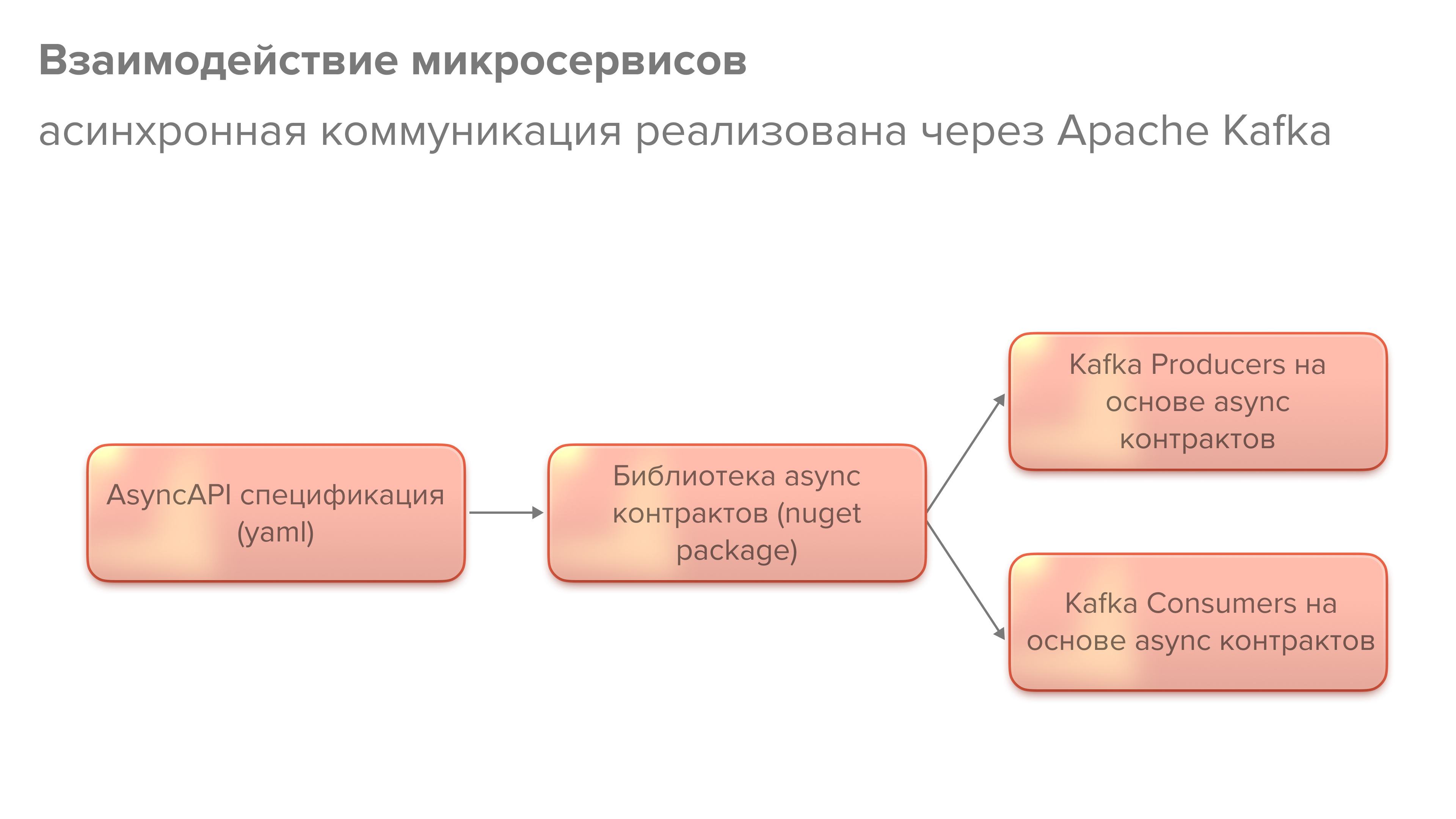 При появлении нового микросервиса, подход уже отработан, и все процессы создания библиотеки контрактов и процесс работы с Kafka отлажен, поэтому все эффективно и нет разночтений в разработке, все единообразно.