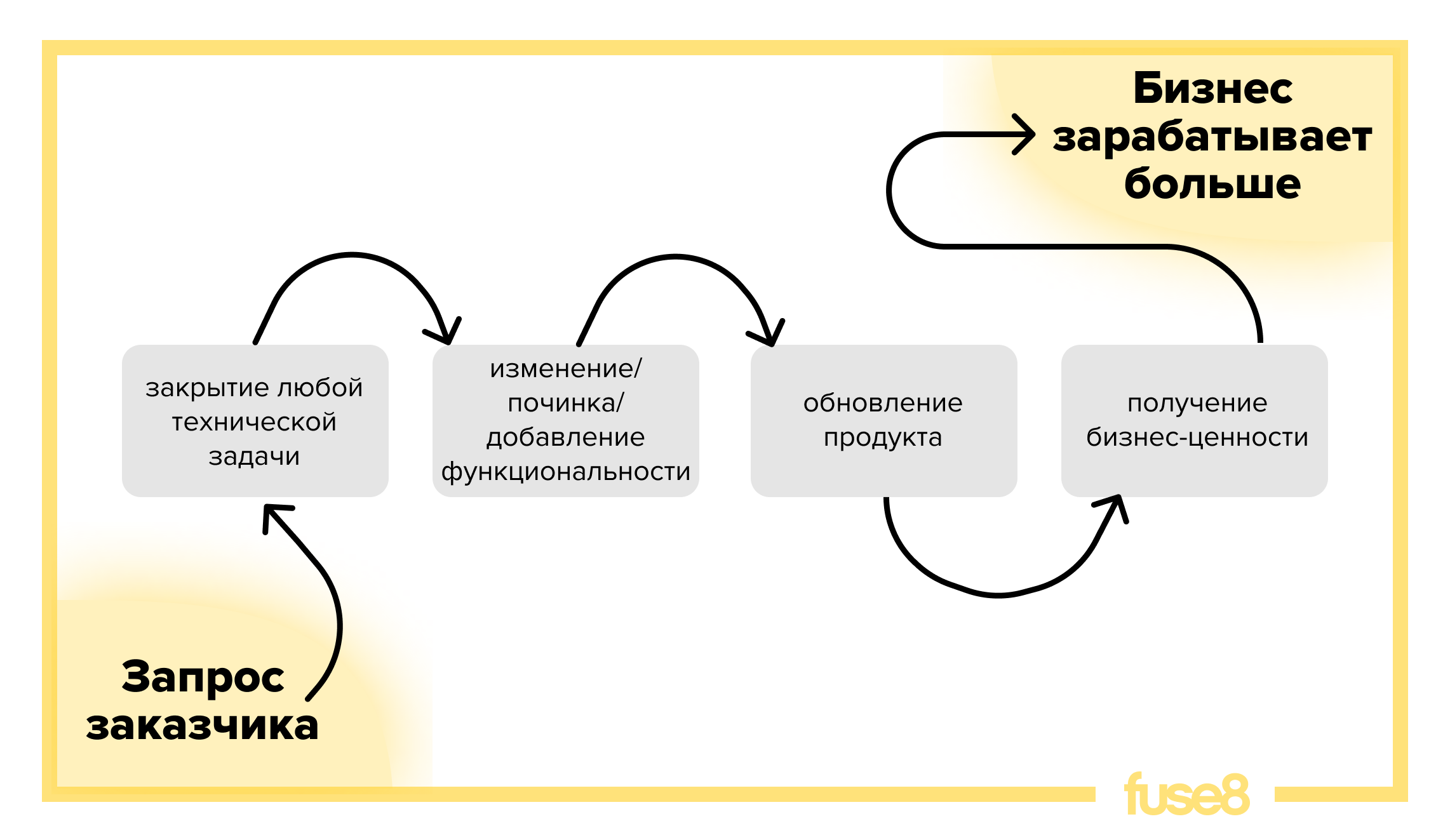 Мы становимся эффективнее, когда понимаем, на какой результат работаем. Поэтому продавать просто «руки», которым не раскрыли сути проекта, нам не так интересно, а заказчикам – не так полезно.