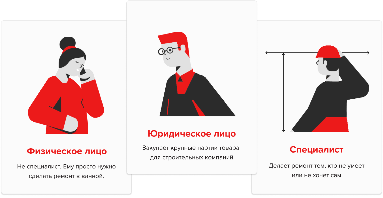 Мы начали работу над проектом с изучения целевой аудитории интернет-магазина 47.ru. Это физические лица, юридические лица и специалисты.