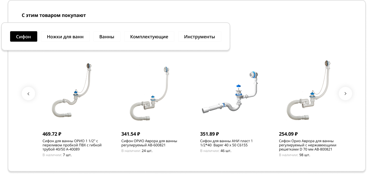 Ниже на странице товара — информация о доставке, адресах пунктов самовывоза, и раздел «С этим товаром покупают». Его мы дополнили тэгами, которые помогут покупателю найти сопутствующие товары.