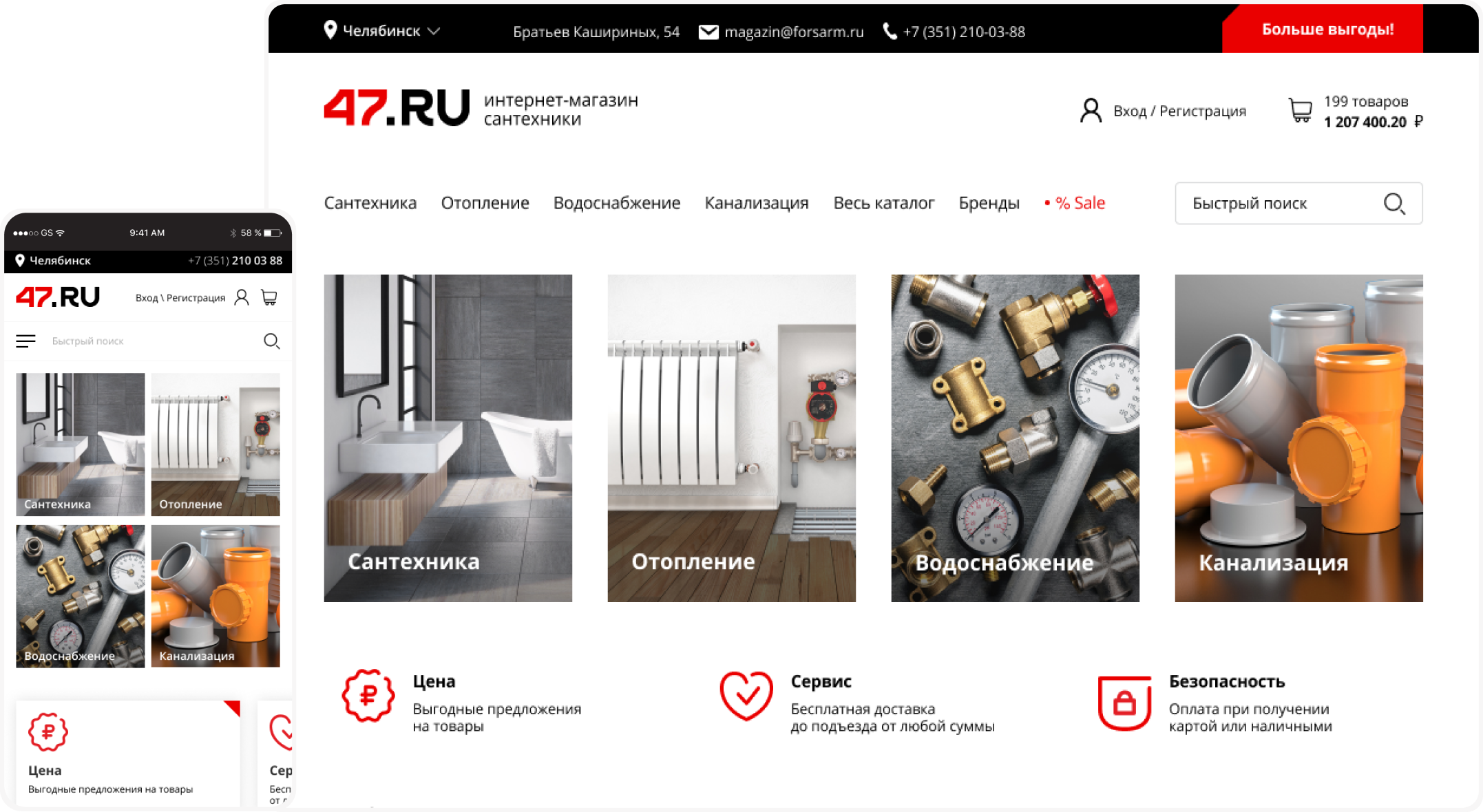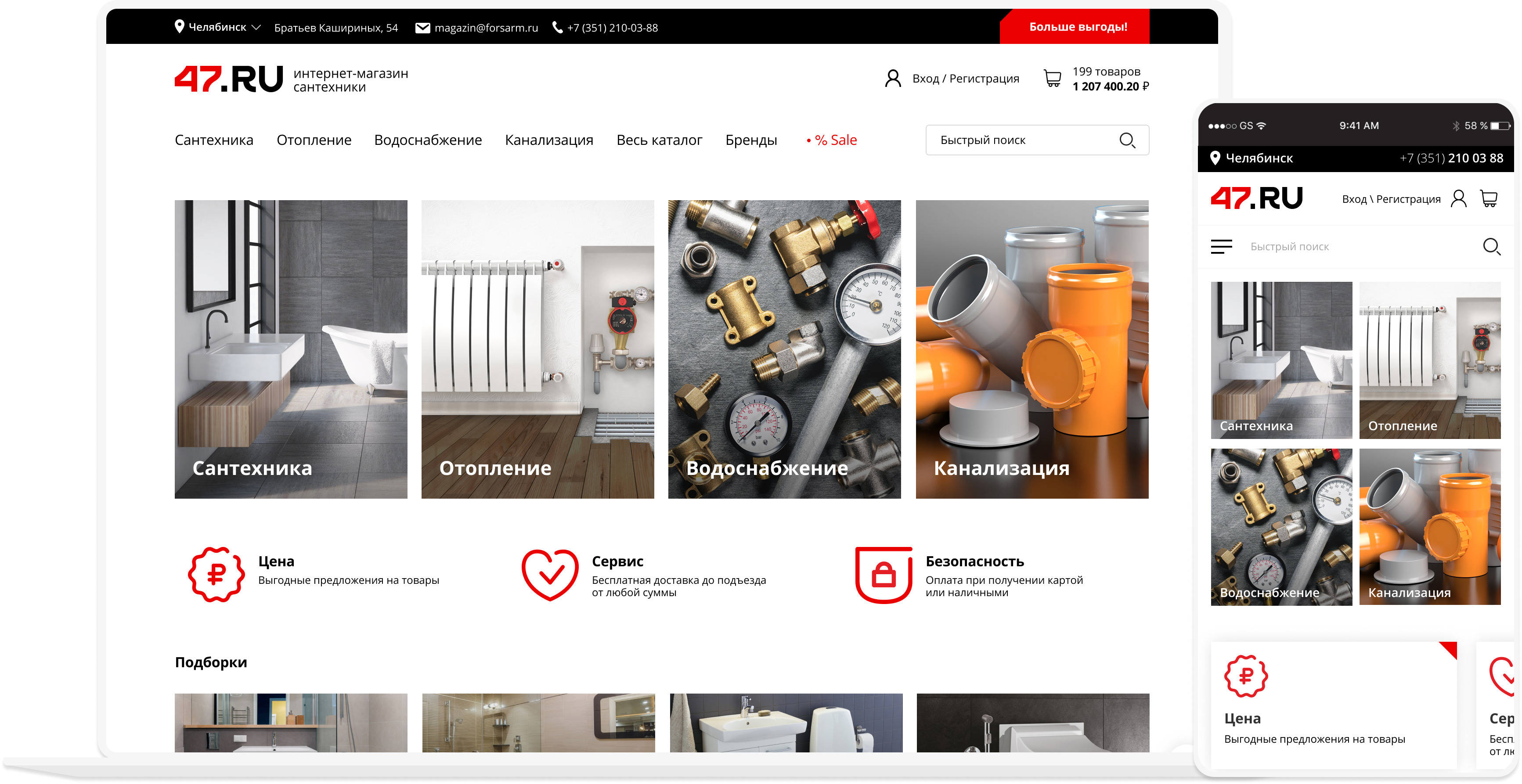 Компания FORS продаёт сантехнику и комплектующие для монтажа инженерных систем, связанных с водоснабжением и водоотведением через интернет-магазин 47.ru. В ассортименте — собственная продукция и товары партнёров.