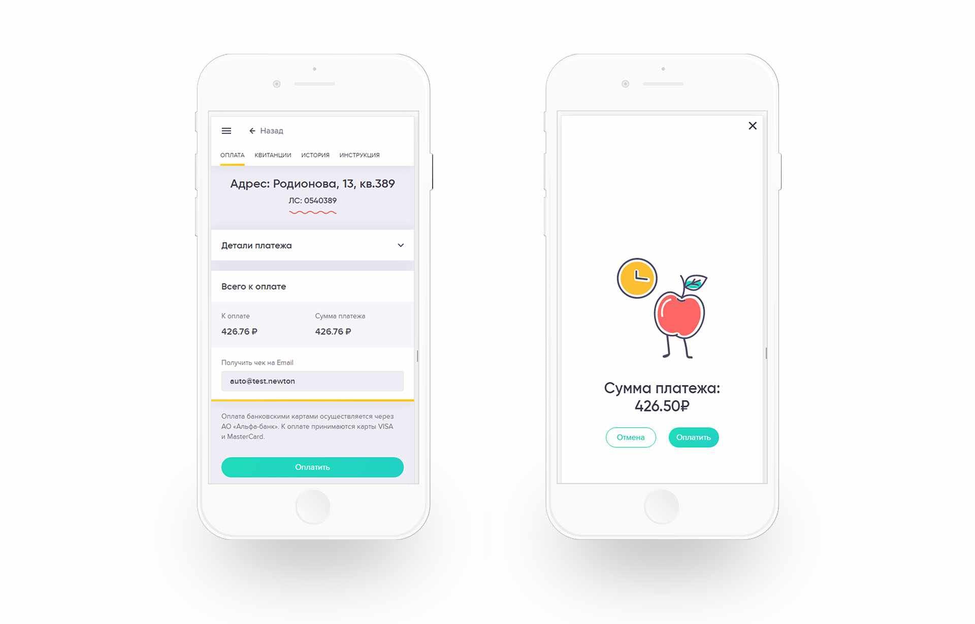 Личный кабинет также планировалось снабдить функцией оплаты коммунальных услуг прямо из портала. Для этого мы интегрировали в «Ньютон Клуб» банковский эквайринг — при оплате коммунальных услуг банк принимает средства, а затем переводит их на расчетный счет управляющей компании.
