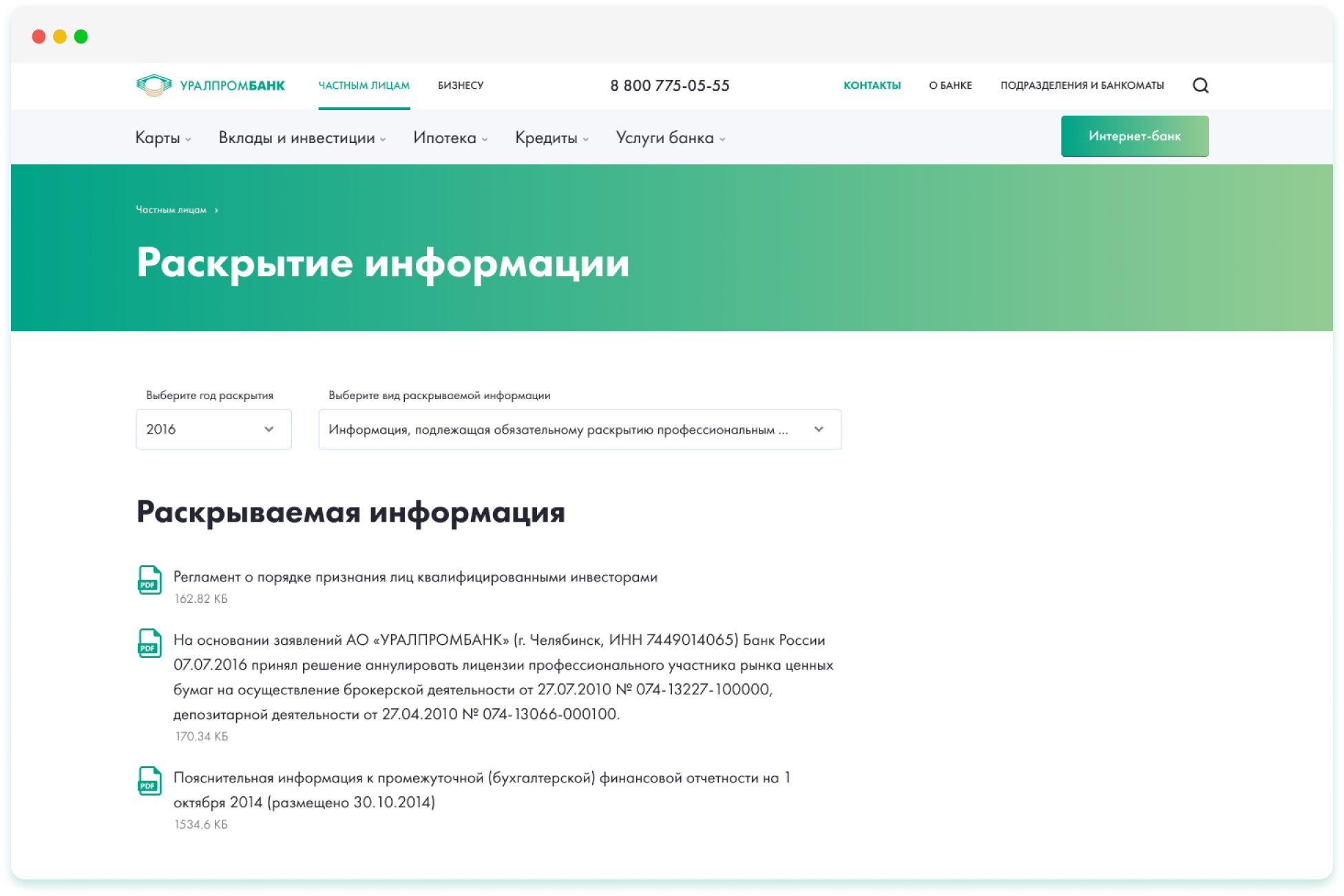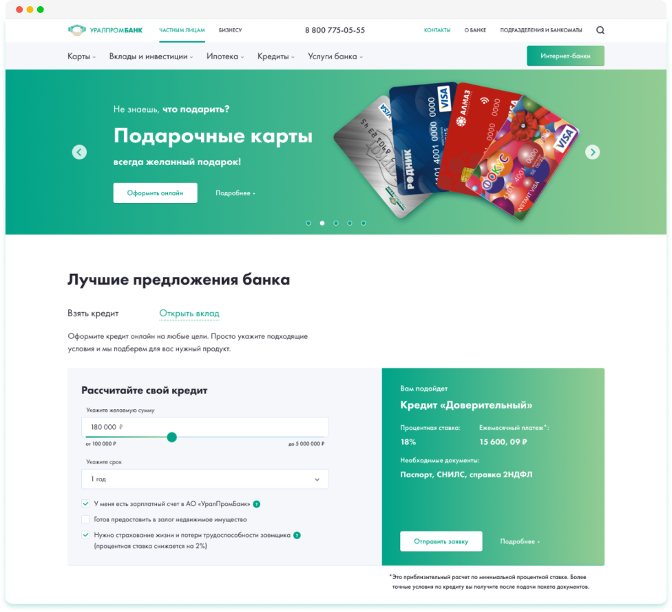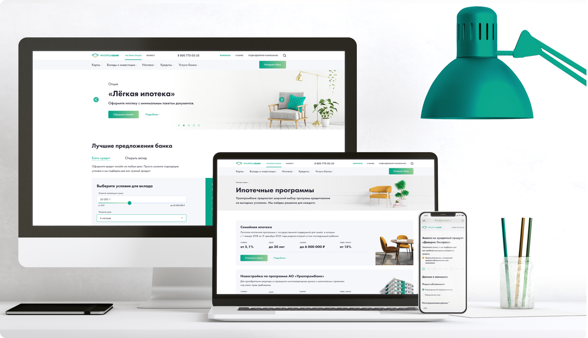 Чтобы помочь клиенту добиться этих целей, мы должны были полностью обновить сайт «Уралпромбанка» — технически, логически и визуально: