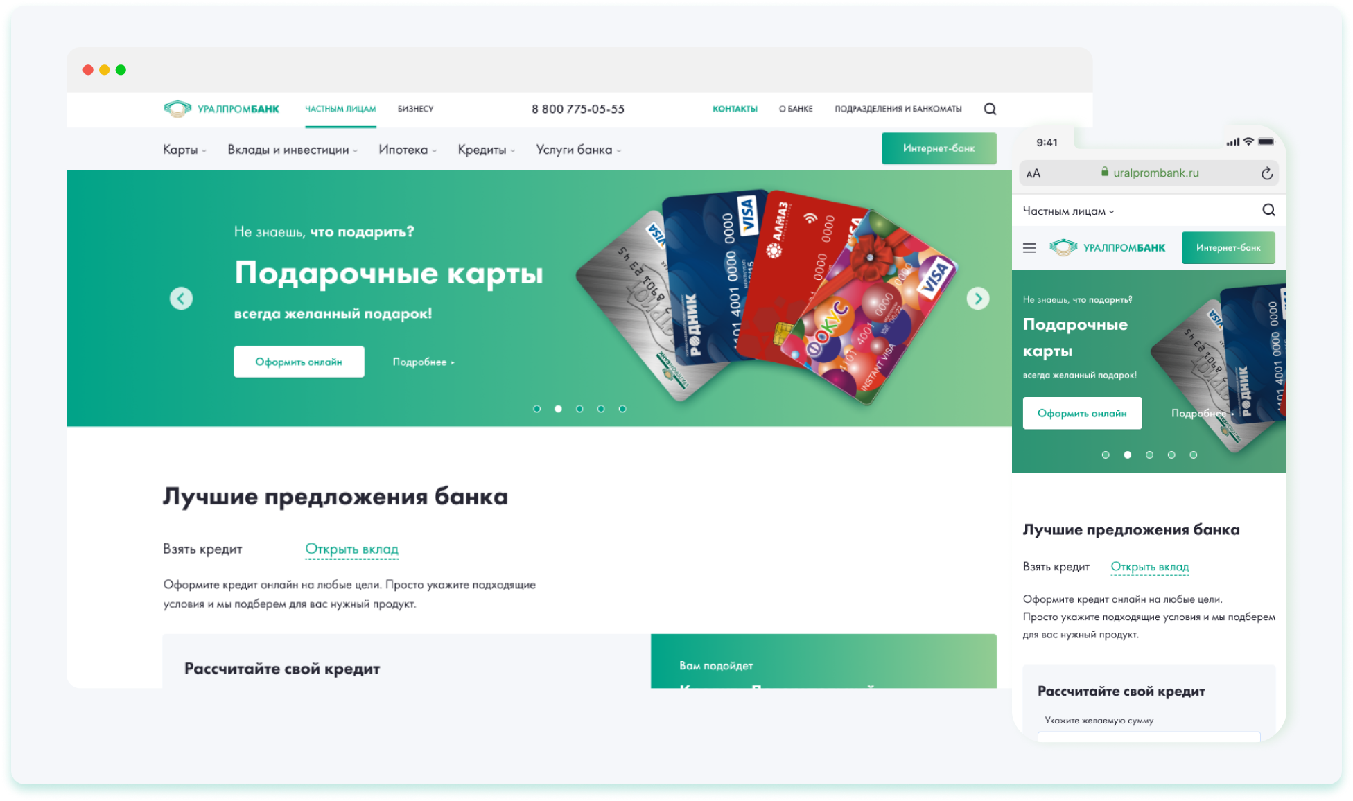 Результатом всех наших работ стал запуск нового адаптивного сайта «Уралпромбанка».