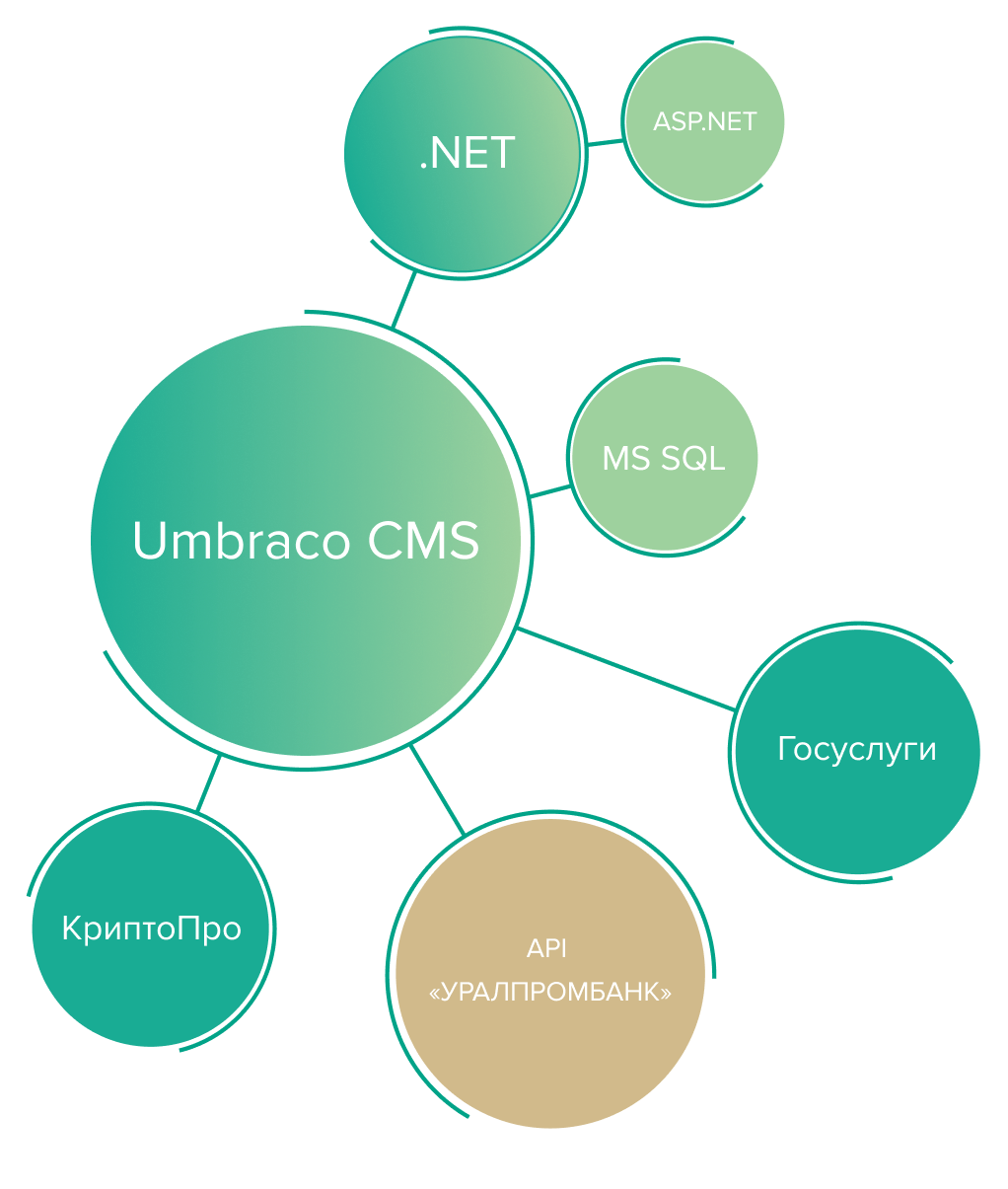 Новый сайт «Уралпромбанка» разработан на Umbraco. Это бесплатная CMS с удобной административной панелью и большим сообществом поддержки. Она постоянно развивается, в открытом доступе есть огромное количество модулей для оптимизации.